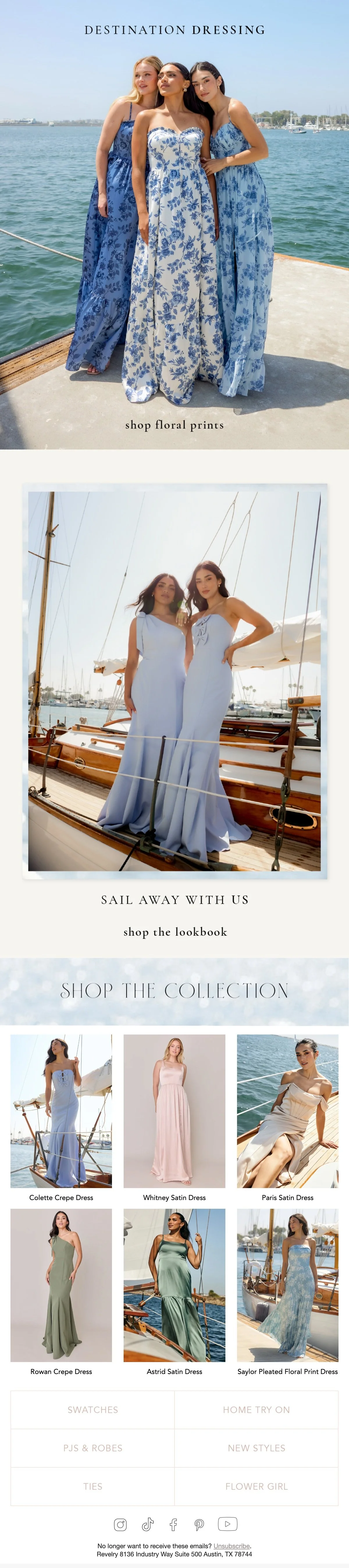 OBJECTIVE: Promote the largest product launch to date by pushing 21 new styles in 26 new colorways. The goal was to create a broad launch to target all brides looking for Spring and Summer inspiration, but will also highlight the specific trends of “quiet luxury” and “cottage core”.